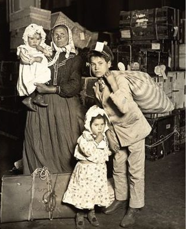An Italian family lands at Ellis Island in 1905. Photo by Lewis W. Hine